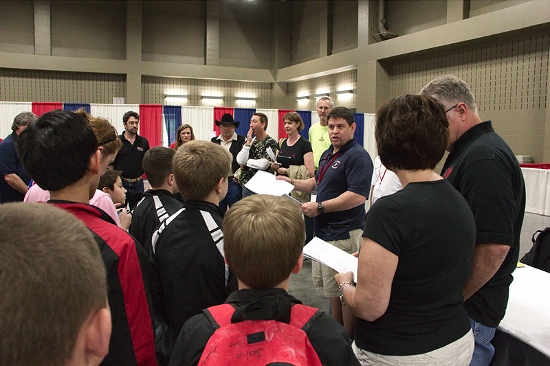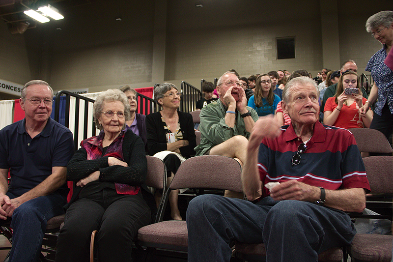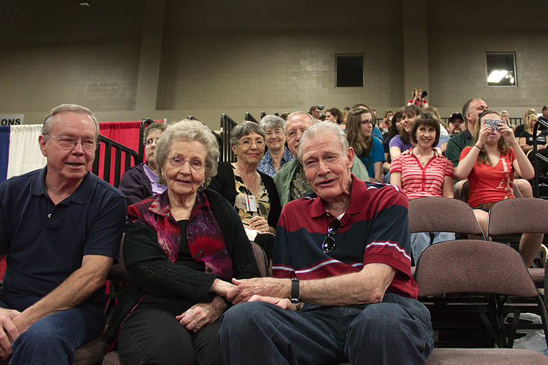 On Sunday morning, Star Center Gymnastics hosted the Region 3 Mens Gymnastics Championship (representing Oklahoma, Kansas, Missouri, Arkansas, Louisiana and Texas) at the Palmer Events Center in Austin. Justus had his own cheering section – over twenty family members and friends came to root him on!